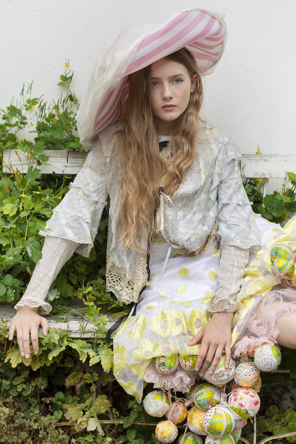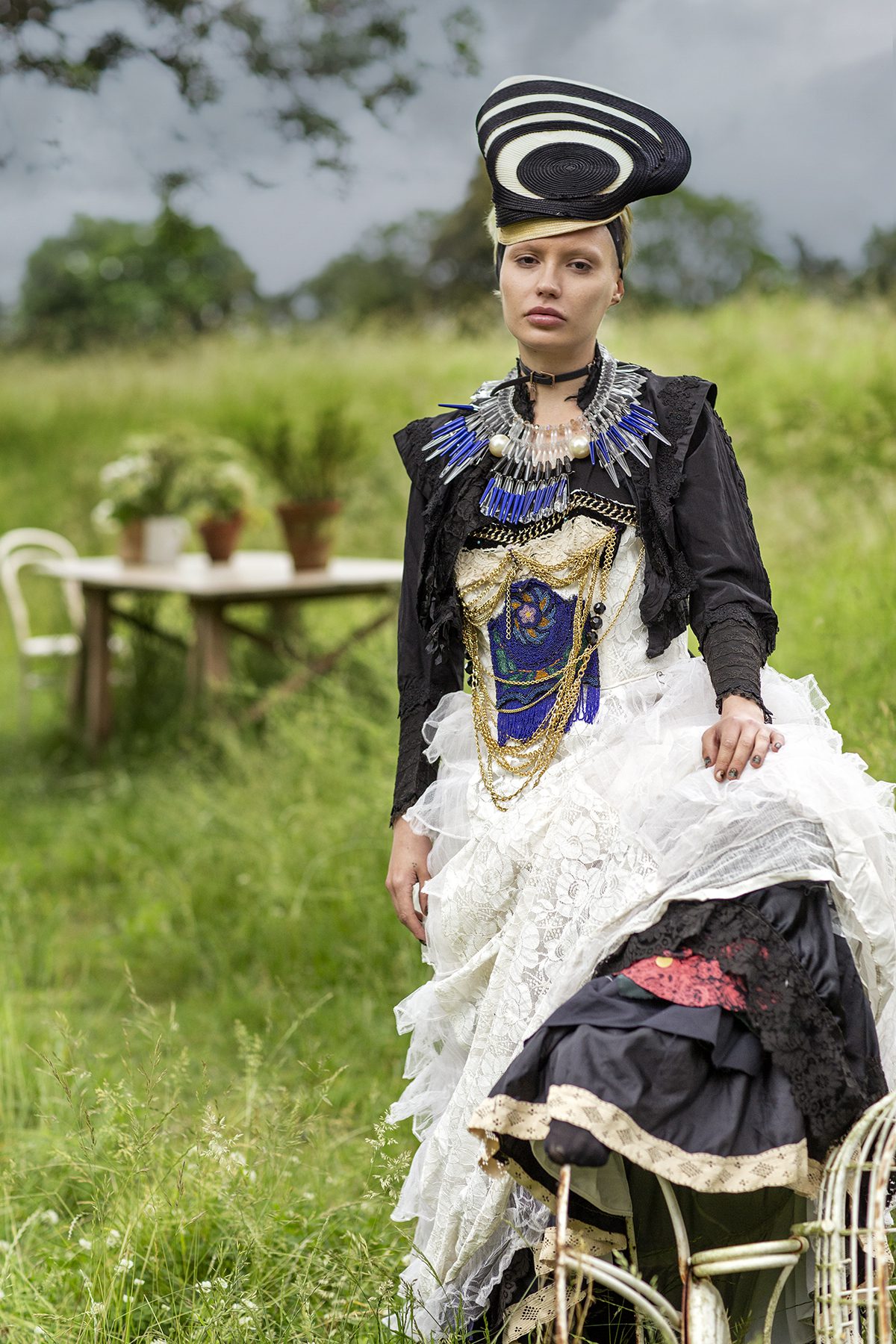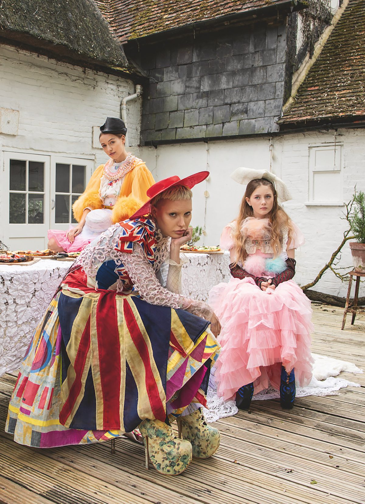 ‘Hand-made in England’ was photographed by Maryam Eisler at Story Deli in Oxfordshire, featuring models Alice Pins, Agathe Angel Chapman de Lussy and Blaise and sustainable, ethical up-cycled fashion and design by Victim Fashion Street and Meihui Liu. Hats by Noel Stewart and Piers Atkinson. Shoes by Natacha Marro. Styling by Ann Shore. Makeup by Melissa Victoria Lee and Keely Mangham