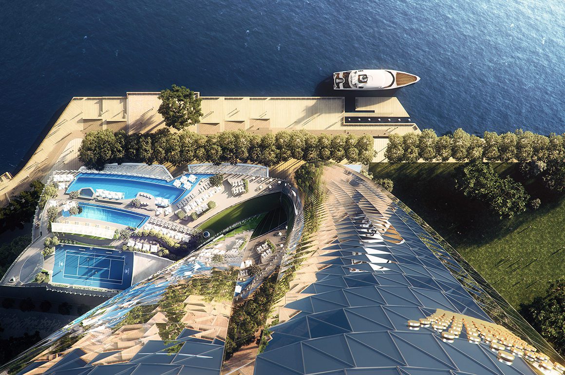 View down to the harbour from One Barangaroo, the latest residential development in Sydney