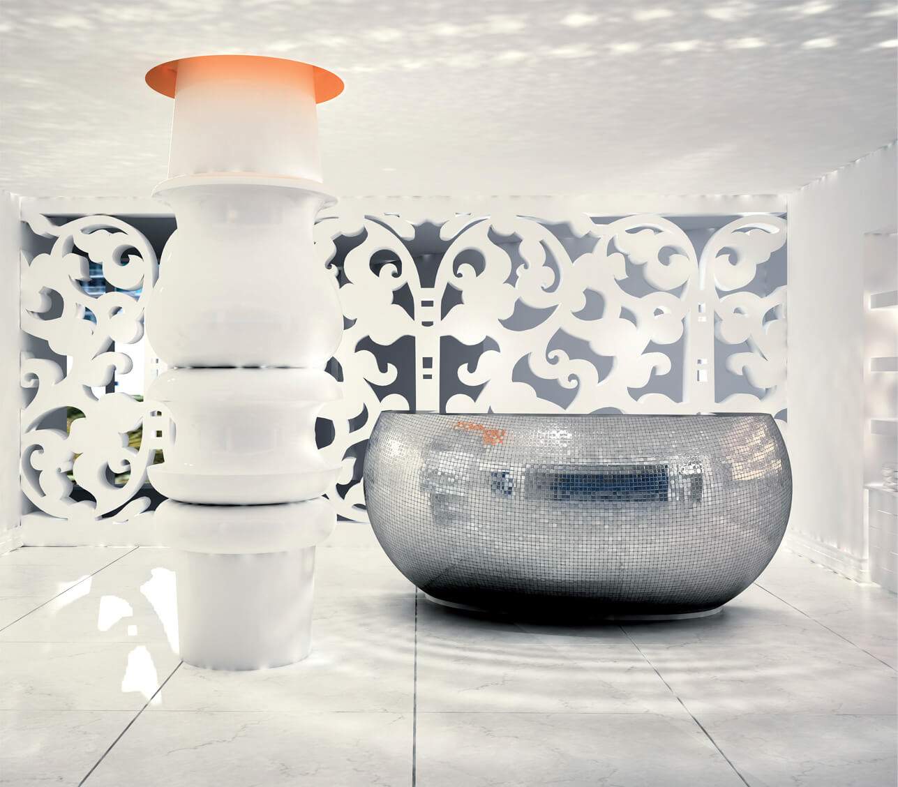 SPACE was very adamant about creating an experience for their clients. They were very particular about the lighting and for the music they installed a Bang & Olufsen sound system. To complete the picture, they even customized their own scent for The . Every detail was taken into consideration to enhance the shopping experience in a homely setting, so that the customer can understand the pieces and the environment.