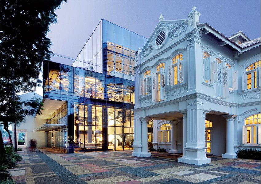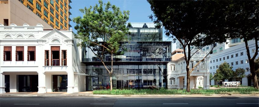 RECENT WINNER OF SINGAPORE’S URA ARCHITECTURAL HERITAGE AWARDS, SPACE FURNITURE’S NEW HOME JOINS TWO HISTORIC BUILDINGS WITH A MODERN GLASS STRUCTURE TO FORM A 40,000 SQ FT MULTIPLEX THAT IS A TRIUMPH OF DESIGN. LEAD ARCHITECT Chan Ee Mun, SENIOR ASSOCIATE OF WOHA, WALKS US THROUGH THE PROJECT