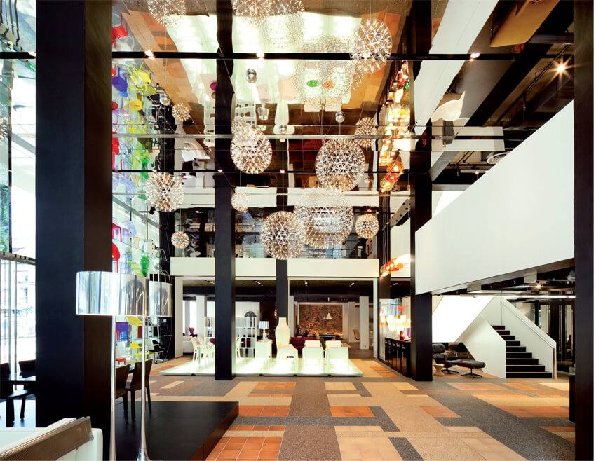 The fact that it’s a sales site means that there are very specific requirements. The main challenge was designing the middle unit because although modern it had to get along with its neighbours, the two older buildings. We wanted to expose the showroom/furniture and we were trying to figure out how to best accomplish that. The law at the time stated that if a building had Conservation status then the exteriors must not be altered. We had to work with the authorities to change that rule to allow us to give it a more modern and urban look.  Inside, we needed to find the best way to design a showroom that would work well with lots of different brands, many of which are in competition with each other. They needed to be separate but at the same time there has to be a connection between them all. SPACE carried 13 major brands and each had a different design philosophy. In the end it was SPACE that determined the location of each brand and how much floor space to allocate to each and it was our job to make that possible.