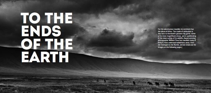 For the adventurous traveller, no continent has the allure of Africa. The cradle of civilisation is also host to the world’s greatest big game, some of its most magnificent vistas, and is spellbinding in the sheer variety of its wildlife. Award-winning photographer William Chua has travelled many of Africa’s most celebrated wilderness areas, from the Serengeti to the Namib, and we showcase his images on the following.