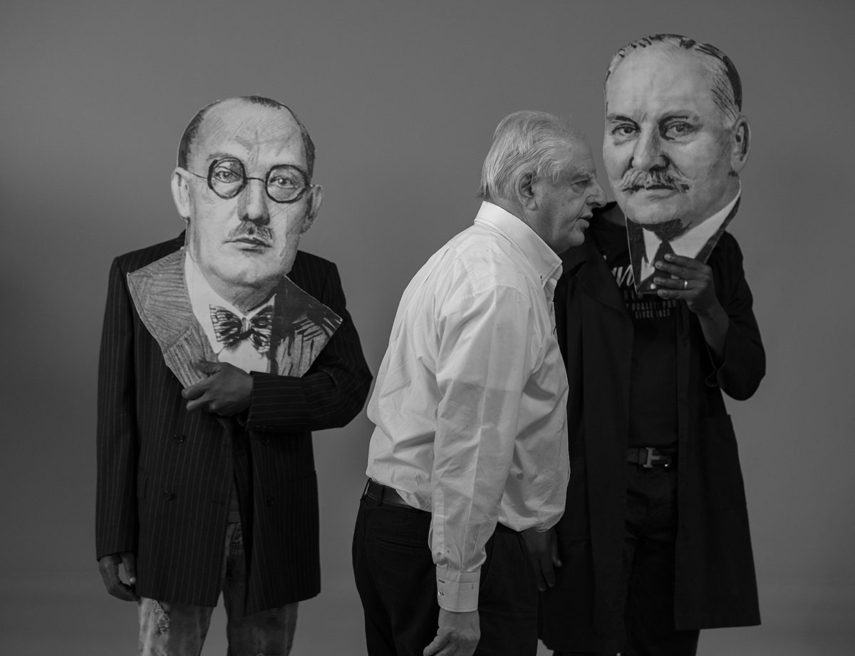 We are backstage at the Barbican Centre, London, in the staff canteen, a windowless space that is empty for the moment as it is mid-morning. We have seated ourselves at a small square table in a corner, beneath a couple of framed newspaper cuttings of theatre reviews. Kentridge is wearing a white collared shirt and navy round-neck sweater – as, coincidentally, am I. Well built, with plenty of white-grey hair, slightly tousled and prominent white eyebrows, distinguished and just a tad authoritarian in his demeanour, he gives the vibe of being a professional.